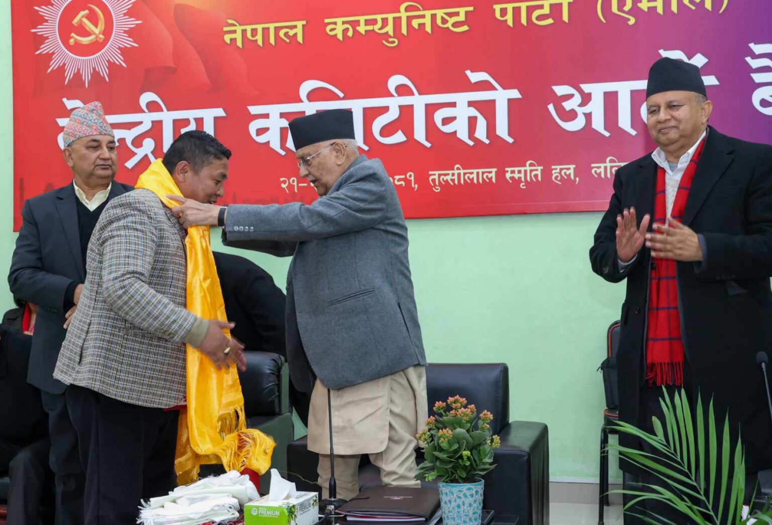 एमालेको केन्द्रीय कार्यालय, च्यासलमा जारी केन्द्रीय कमिटीको आठौँ बैठकको आजको खाजा ब्रेक हुनुुपूर्व पार्टीका अध्यक्ष एवं प्रधानमन्त्री केपी शर्मा ओलीसहित नेताहरुले एकीकृत समाजवादीका आदिवासी जनजाति फाँटका सहइञ्चार्ज चेपाङलाई पार्टी प्रवेश गराएका हुन् ।