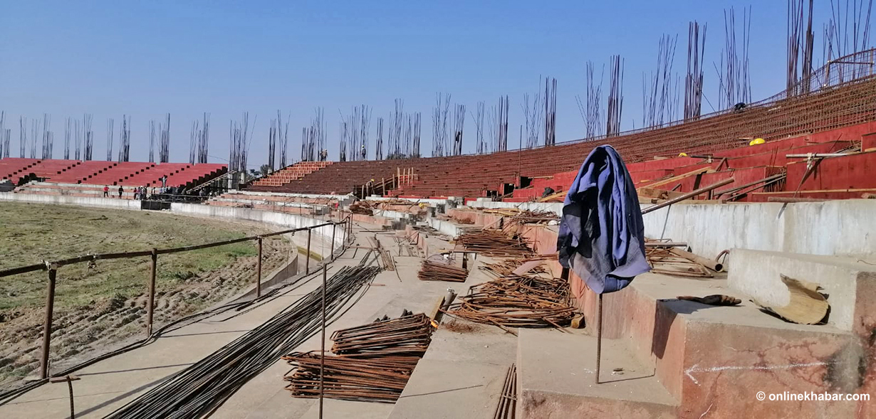 ठेकदार कम्पनीले सिमेन्टको समस्याका कारणले अझै सोचे जति प्रगति गर्न नसकेको जनाएको छ । रंगशालाको पहिलो चरणमा दस हजार जना दर्शक अट्ने प्यारापिट तयार हुनेछ ।