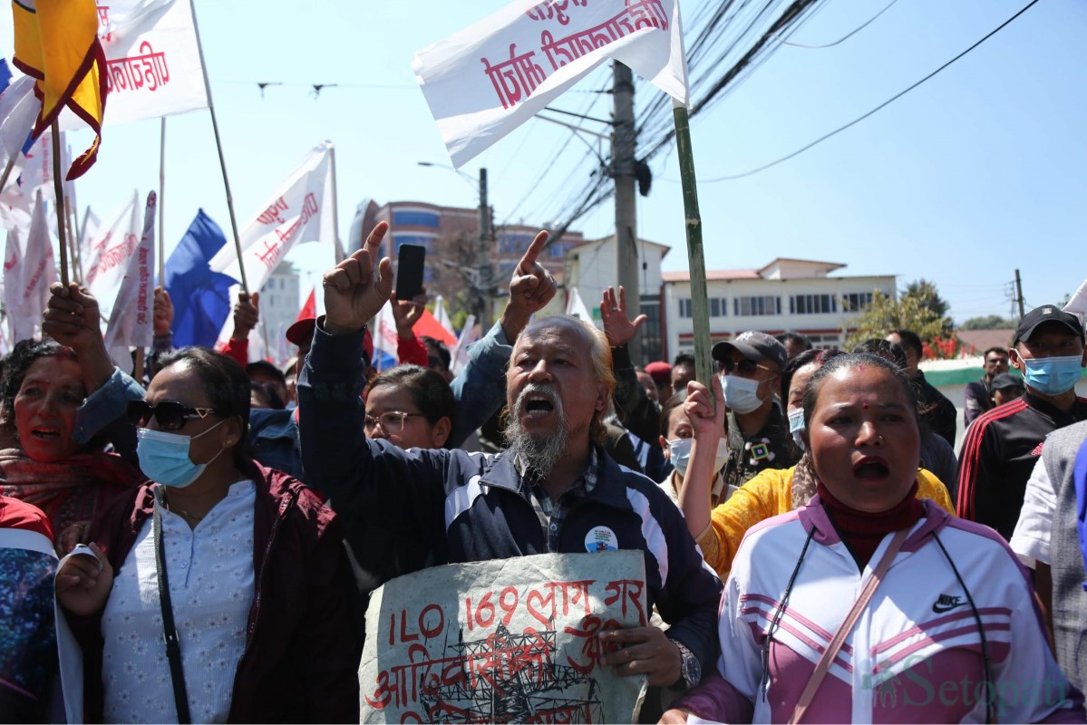 बुधबार मुक्कुमलुङ ताङ्सेःप चुम्भो र मुक्कुमलुङ संरक्षण अन्तरदलीय संघर्ष समितिले माइतीघरमा प्रदर्शन गरेको हो ।