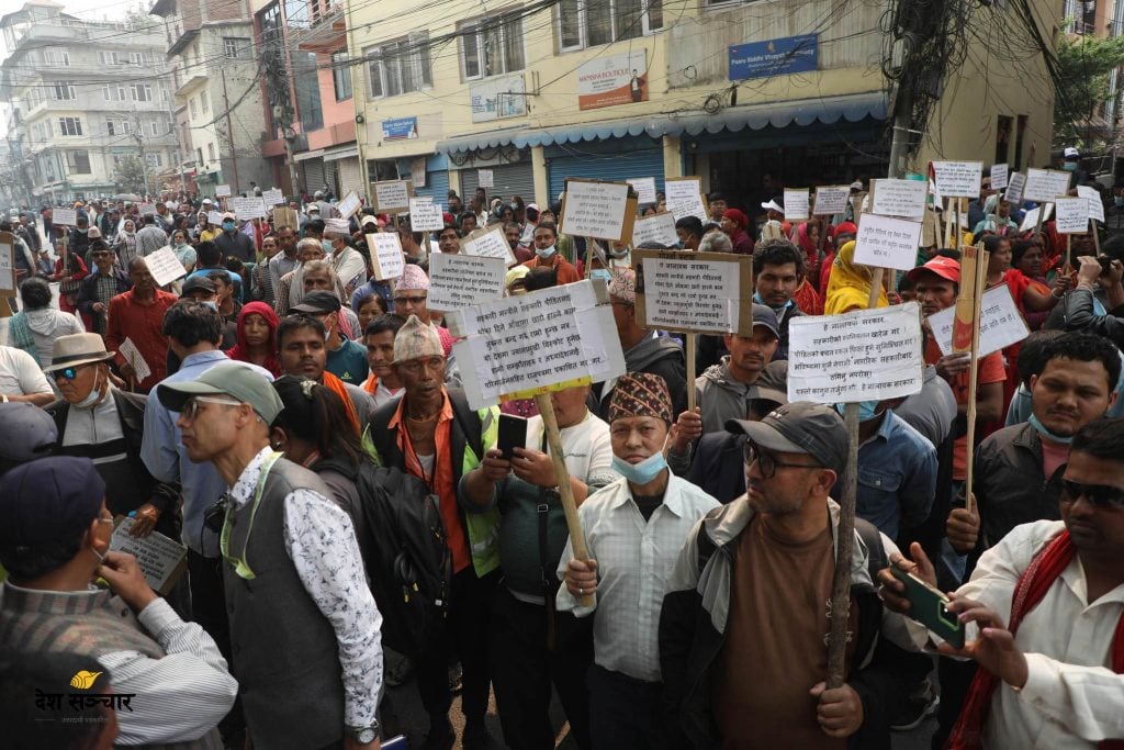 सहकारी बचतकर्ता संरक्षण राष्ट्रिय अभियान महासंघको आयोजनामा सहकारी पीडितहरूले ब्यानर, नारासहित प्रदर्शन गर्दै वालुवाटरसम्‍म पुगेका हुन् ।
