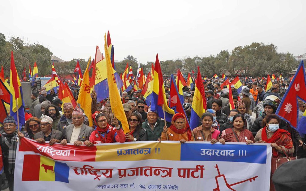काठमाडौं । राष्ट्रिय प्रजातन्त्र पार्टीले राजसंस्था पुनस्र्थापनाका लागि मंगलबार बल्खुमा सभा गर्ने भएको छ । राप्रपाले भृकुटीमण्डपमा सभा गर्न अनुमती मागे पनि जिल्ला प्रशासन कार्यालय काठमाडौंले अनुमति नदिएपछि बल्खुमा गर्ने भएको हो ।