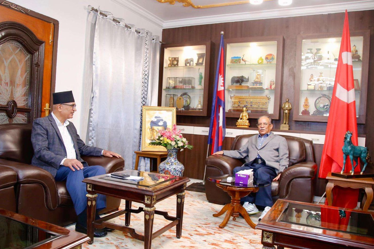 काठमाडौं । उपप्रधानमन्त्री एवं अर्थमन्त्री विष्णु पौडेल र माओवादी केन्द्रका अध्यक्ष एवं पूर्वप्रधानमन्त्री पुष्पकमल दाहाल ‘प्रचण्ड’बीच भेटवार्ता भएको छ ।