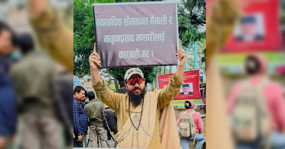 प्रदर्शनका क्रममा उनले मुद्दामा फैसला गर्ने उच्चका न्यायाधीशद्वय सोमकान्त मैनाली र मातृकाप्रसाद भण्डारीको राजीनामा माग्दै ब्यानर प्रदर्शन गरेका थिए ।