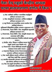 काठमाडौं । नेवाः देय् दबूको अध्यक्षमा सत्यनाराण डंगोलले आफ्नो शसक्त दावेदारी प्रस्तुत गरेका छन् । वर्तमान महासचिव रहेको डंगोलले नेवाः देय् दबूको आठौँ केन्द्रीय महाधिवेशनमा अध्यक्षको उम्मेद्वारी घोषणा गरेका हुन् ।