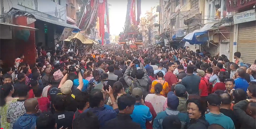 काठमाडौं। रातो मच्छिन्द्रनाथ रथ जात्राअन्तर्गत शनिबार महिलाहरुले रथ तानेका छन् ।