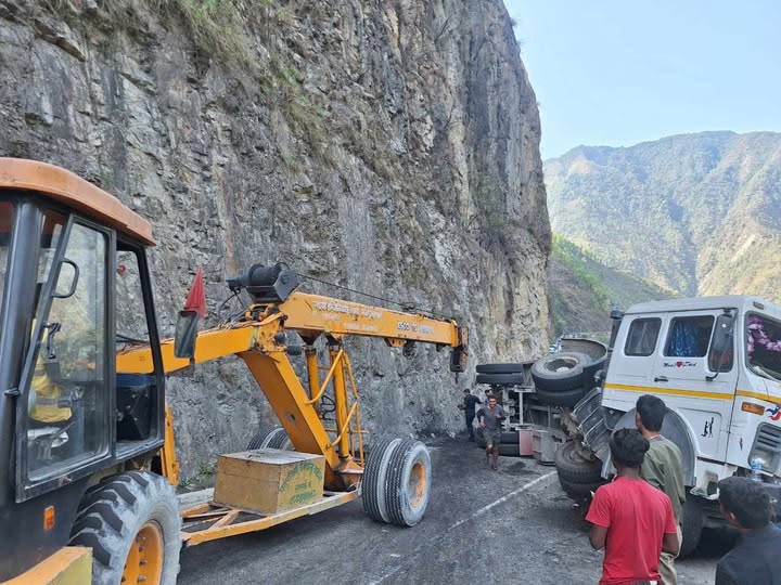 आइतबार बिहान नारायणगढबाट मुग्लिनतर्फ जाँदै गरेको मधेश प्रदेश–०३–००१ ख ९८१७ नम्बरको ट्रक इच्छाकामना गाउँपालिका–५ तुइनखोलामा दुर्घटना हुँदा सडक अवरुद्ध भएको थियो ।