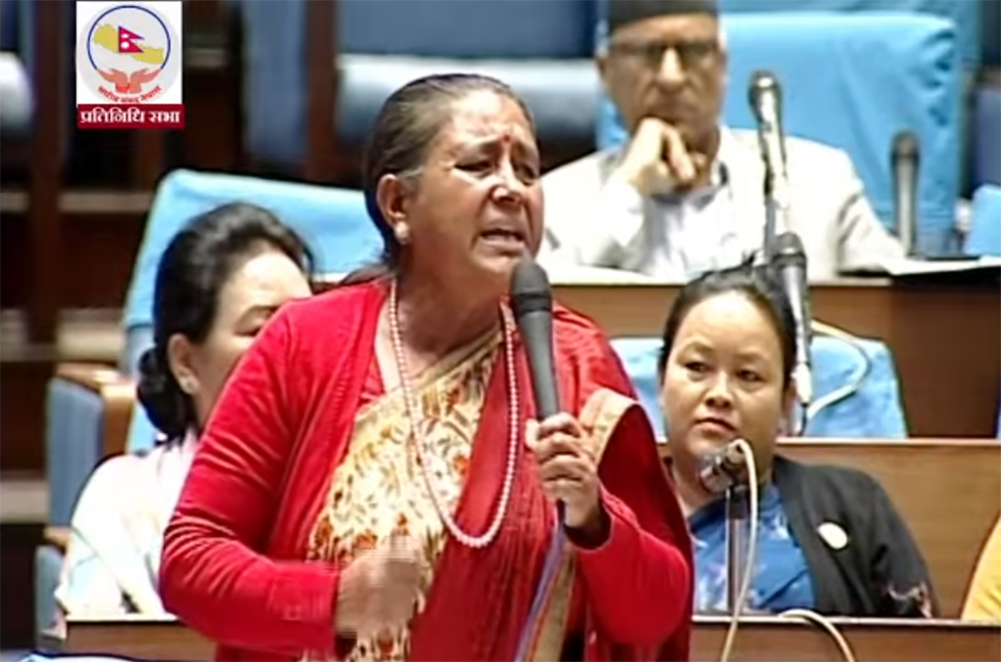 आन्दोलनका बेला नेताहरूले श्रम आयोग गठन गर्ने भनेको पनि उनले उल्लेख गरिन् । “संविधानमा आउन सकेन, त्यसलाई कसले कैँची लगायो ?,” उनले प्रश्न गरिन् । उनले सभामुखले ‘रुलिङ’ गरेर सरकारलाई श्रम आगोग गठन गर्न लगाउनुपर्ने बताइन् । “समाननीयज्यूले यसलाई रुलिङ गरेर एउटा श्रम आयोग व्यवस्था चाँडोभन्दा चाडो गरौँ ।