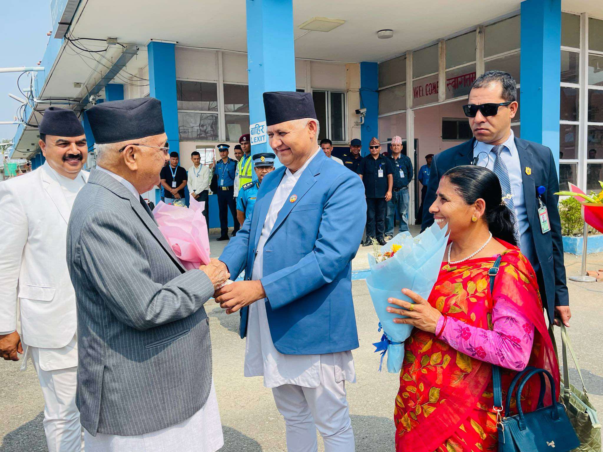 लुम्बिनी प्रदेशका मुख्यमन्त्री चेतनारायण आचार्यले प्रधानमन्त्री ओलीलाई स्वागत गरे । २५६९ औं बुद्धजयन्तीको कार्यक्रममा सहभागी हुन प्रधानमन्त्री ओली लुम्बिनी आएका हुन् ।