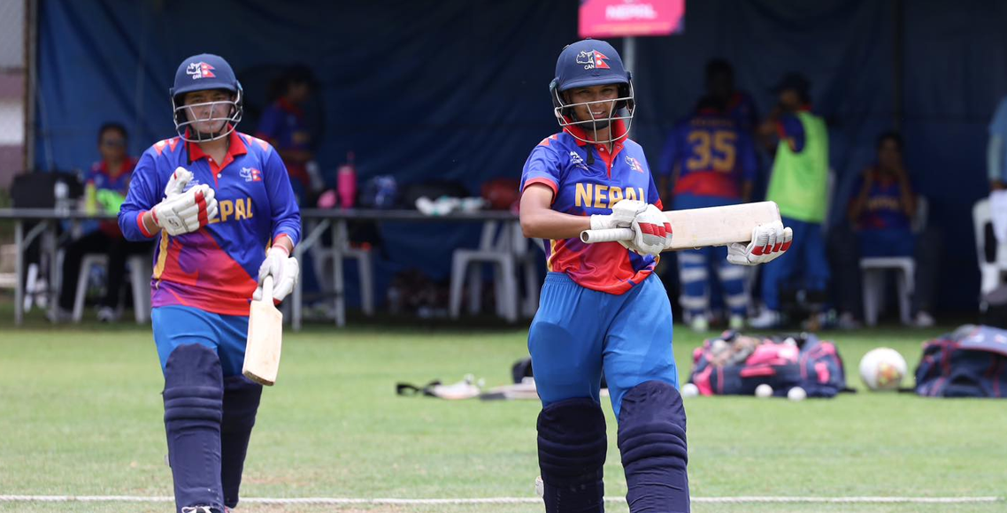 नेपालका लागि सम्झाना खड्का १० रन बनाउँदै क्याच आउट भइन् । कप्तान इन्दु बर्मा ९ र रुविना क्षेत्री ४ रनमा नटआउट रहे । पूजा महतो ३ रनमा क्याच आउट नै भइन् । कविता कुवँर २ रन बनाउँदा बोल्ड आउट भइन् ।