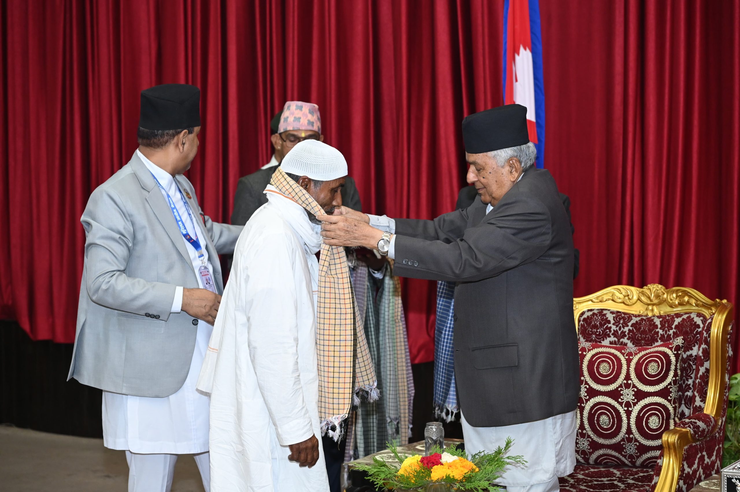 ‘विविध जातजाति, समुदाय, भाषाभाषी, संस्कृति रहेको हाम्रो देशमा यसको संरक्षण र संवद्र्धनका लागि सबै एकसाथ मिलेर लाग्न र यसकै माध्यमबाट आपसमा भाइचारा, मित्रता र सद्भाव बढाउँदै राष्ट्रिय एकतालाई बलियो बनाउन आवश्यक छ, हजयात्राले यसमा ठूलो योगदान दिने विश्वासका साथ तपाईँहरूको यात्रा सफलताको पुनः शुभकामना व्यक्त गर्दछु’, उनले भने । उनले परापूर्वकालदेखि नै नेपाल राज्य निर्माणमा यो समुदायको महत्वपूर्ण योगदान रहेको बताए ।