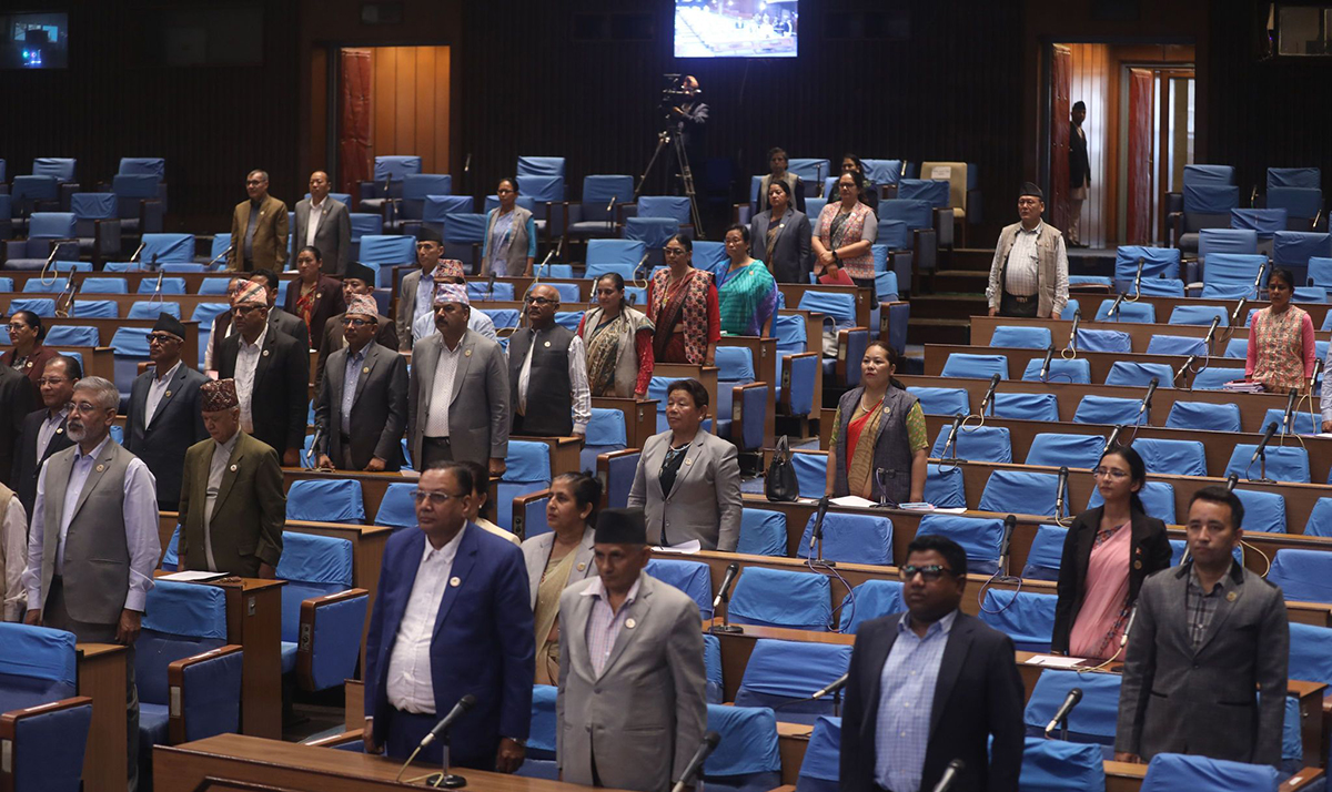 विपक्षी दलका सांसद पुन र खनालले बोलिसकेपछि सभामुख देवराज घिमिरेले कांग्रेस सांसद श्याम घिमिरेलाई बोल्न समय दिएका थिए। तर, विपक्षी सांसदहरू उठेर नाराबाजीमा उत्रिएपछि सभामुखले बैठक स्थगित भएको घोषणा गरे ।