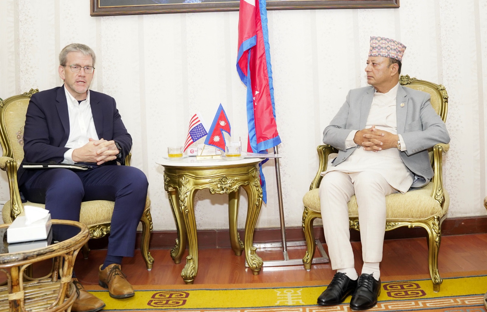 काठमाडौं । उर्जा, जलस्रोत तथा सिंचाईमन्त्री दीपक खड्कासँग नेपालका लागि अमेरिकी राजदूत डिन आर थम्पसनबीच भेटवार्ता भएको छ । उर्जा मन्त्रालयमा आज भएको भेटमा दुई देशबीचको उर्जा सहकार्य र मिलिनियम च्यालेन्ज कर्पोरेशन ९एमसीसी० परियोजना कार्यान्वयनका विभिन्न पक्षमा छलफल भएको हो ।