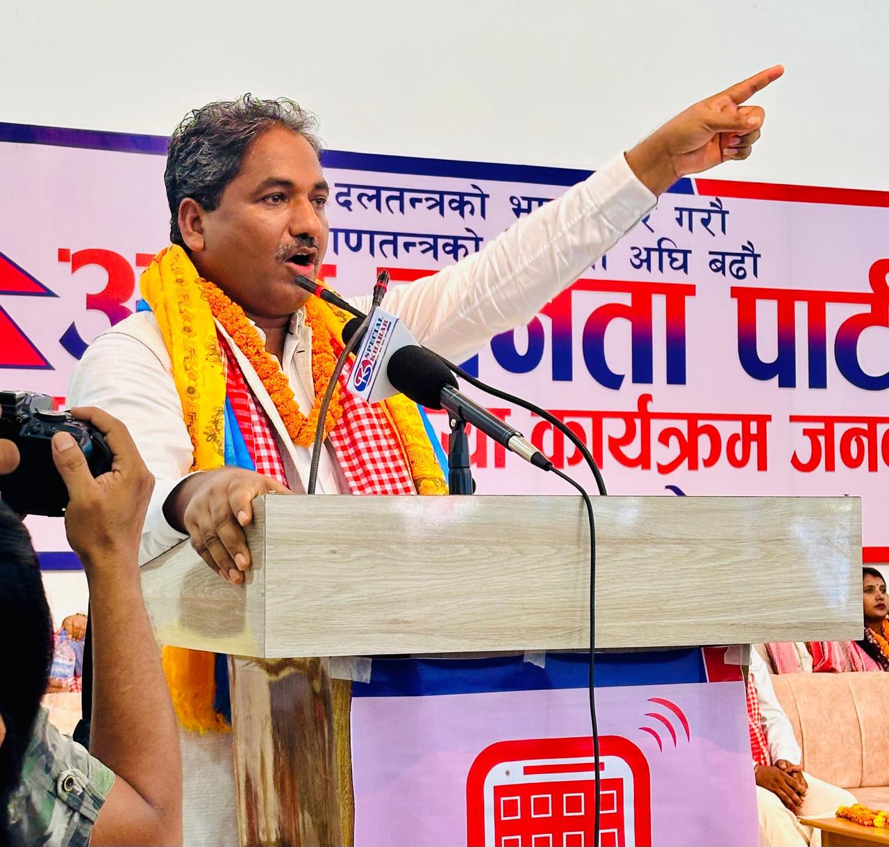 जनकपुर । आम जनता पार्टी (आजपा) का अध्यक्ष तथा पूर्वमन्त्री प्रभु साहले मुलुकमा बढदो बेथिति, ब्रह्मलुट, विभेद एवं दलाल दलतन्त्रका कारण मुलुक धरासायी बन्दै गईरहेको बताएका छन् । ‘दलतन्त्रको भण्डाफोर गरौं, गणतन्त्रको दिशामा अघि बढौं’ आजपाद्धारा आज (शनिबार) मधेस प्रदेशको राजधानी जनकपुरधाममा आयोजित बृहत अन्तरक्रिया कार्यक्रमलाई सम्बोधन गर्दै मुलुकलाई जोगाउँनका लागि प्रधानमन्त्री केपी शर्मा ओलीले राजीनामा गरेर अन्तरिम सरकार गठन गर्नुपर्ने बताए ।