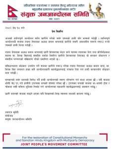संयुक्त जनआन्दोलन समितिका संयोजक नवराज सुवेदीले विज्ञप्ति जारी गरी उक्त घोषणा गरेका हुन् । सरकारले आफूहरूको शान्तिपूर्ण आन्दोलनमाथि दमन गरेकाले आन्दोलनको स्वरूप परिवर्तन गर्न बाध्य भएको विज्ञप्तिमा उल्लेख छ ।